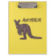 Clipbard features kangaroo silhouette in aboriginal mosaic pattern with "Australia" in grunge style text
