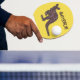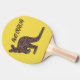 Ping Pong paddle features kangaroo silhouette in aboriginal mosaic pattern on yellow background with "Australia" in grunge style text