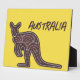 Tabletop plaque features kangaroo silhouette in aboriginal mosaic pattern on yellow background with "Australia" in grunge style text