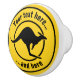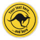 Yellow kangaroo silhouette. Vector icon with custom colour. Custom background colour. Two text fields on circle.