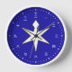 Clock with a design with the flag of Chiba Prefecture in Japan (千葉県, Chiba-ken), a blue flag with a white and yellow symbol., with kanji clock face
