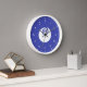 Clock with a design with the flag of Ibaraki Prefecture in Japan (茨城県, Ibaraki-ken), a blue flag with a white symbol, with kanji clock face
