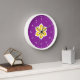 Clock with a design with the flag of Kyoto Prefecture in Japan (京都府, Kyōto-fu), a purple flag with a white and yellow symbol of a cherry flower, with kanji clock face