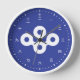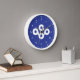 Clock with a design with the flag of Osaka Prefecture in Japan (大阪府, Ōsaka-fu), a blue flag with a white symbol, with kanji clock face