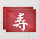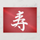 Postcard featuring Kanji congratulations - 寿 - a popular kanji symbol which means in Japanese long life and congratulations. Text design by Alma Wad in red brushed metal look background .You can personalise this card now with your own words . Japanese or English .