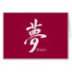 The Kanji symbol for Dream looks amazing on all the apparel, custom paper products, and all the gifts we offer. We've designed it in traditional ink black or crisp white, so you can place it on any shirt, or play around with all 256 background colours. Add text, make it your own!