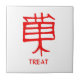 Kanji Treat red ceramic small white tile