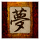 Kanji character for Dream on old parchment paper with a beautiful and elegant background of red and grunge gold. Very zen like digital art will bring a sense of peace and tranquillity into your living and work space!