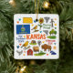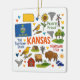 Commemorate your trip to the state of Kansas with this modern keepsake Christmas ornament, featuring hand-drawn style illustrations of iconic food, animals, landmarks, landscapes, and culture. Personalise the back to mark your US adventure and create a memory you'll hang up on the tree for the Holidays year after year.