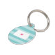 Let your furry friend show some home state pride with this cute Kansas ID tag. Design features a white silhouette map of the state of Kansas with a pink heart inside, on a tone on tone turquoise stripe background. Add your pet's name and contact information to the back in white lettering on an aqua background.