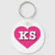 This key chain features a vibrant hot pink heart containing the bold, white, upper case letters KS, the official abbreviation for Kansas, the sunflower state.