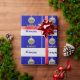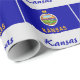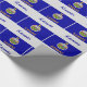 Wrap your gifts in Kansas style with this paper that features the distinctive design in blue and gold of the Kansas state flag. Beneath each flag image is the customisable text in blue script "Kansas". The flag images and text are placed on a silver grey background.