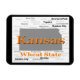 Kansas state pride image including map silhouette with cities, towns and motto.