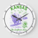 Display your Kansas state pride, with this charming wall clock. It features the Sunflower State heritage, showcasing a powerful bison sunflower covered wagon, design. An established 1861 gift, celebrating prairie history. This Kansas wall clock, adds timeless rustic charm to any home. Perfect for any one