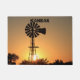 A shot of a Windmill Sunset silhouette with tree s, and a Golden Sky.