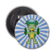 The Kappa is one of the more famous monsters from Japanese culture! Kappa are river imps with turtle-like features, and a bowl of water on the top of their heads, for when they leave the water. This cute kappa is wielding two cucumbers on a blue sunburst background.