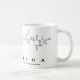 Karalina spelled out in amino acids as K A R A L I N A (Lysine Alanine Arginine Alanine Leucine Isoleucine Asparagine Alanine) on a mug for the scientist in you.