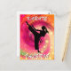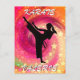 Karate Girl Kick Stars and Swirls Retro Postcard