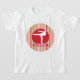 The t-shirt feels and looks great quality, a good thick cotton. It will be a little big for my son, but that means he will be able to wear it and not out grow it too soon. The print was as described on the order when personalised. True size, shape and colour T-shirt- thanks.