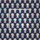 Dark blue fabric patterned with rows of white karate suits, with their colourful belts. Perfect for anyone who enjoys karate and martial arts.