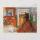 Karin Larsson sitting at the table in a shawl reading a book. Vintage fine art by Swedish artist Carl Larsson.