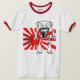 Things go back to you, automatically, like a mechanism, almost robotic. This shirt features a robot with a japanese character written on it. There are red rays behind which symbolises the sun.