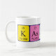 Kashif spelled out as K As H I F (Potassium Arsenic Hydrogen Iodine Fluorine) on a mug for the scientist in you.