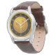 I was uncertain about the size being too small but it looks good. The case looks like aluminum (not shiny) and the time is easy to see. I changed the band because the leather doesn't go with my lifestyle.a. Exactly what I expected, nice yellow. It grabs peoples attention.