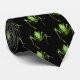 This tie features a lively katydid pattern. Katydids are medium-sized to large insects. They are usually green, sometimes with brown markings, and are camouflaged to blend with the leaves they feed on. Their very long antennae distinguish them from grasshoppers. Seen up close, they seem to be aliens from outer space!