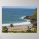 A beautiful scene of Kauai, Hawaii along the ocean shore with palm trees blowing.