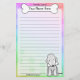 Fun Kawaii Bedlington Terrier stationery with a cartoon dog breed in the lower right corner. The top portion can be instantly personalised with your name inside the big doggie bone. Border and paper background are a pretty pastel rainbow.