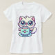 Kawaii Big-Eyed Cat with Teacup Cute T-Shirt