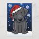 Black Lab Christmas Postcards are perfect to send to all the friends and family on your holiday list! A super cute kawaii Labrador Retriever cartoon sits upon freshly fallen snow while wearing a Santa cap, and snowflakes drift gently down all around him. Other dog breeds are available.