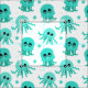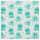 Kawaii Blue Octopus Cute Pattern Fabric. Funny blue octopi swimming, on a white background.