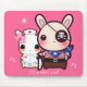 Kawaii bunny couple on pink mouse pad