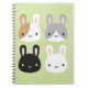 4 different breeds of cute bunny rabbits on a green background for Spring and Easter.
