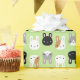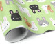 A repeat pattern of 4 different breeds of cute bunny rabbits on a green background for Spring and Easter.