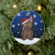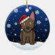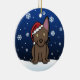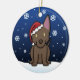 Cute Australian Kelpie Christmas Ornament, drawn in kawaii cartoon! This adorable dog breed is wearing a red Santa hat, and snowflakes are falling all around him. Absolutely adorable, perfect for the dog lover's Xmas tree!