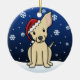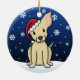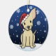 Cute Chihuahua Christmas Ornament, drawn in kawaii cartoon! This adorable dog breed is wearing a red Santa hat, and snowflakes are falling all around him. Absolutely darling, perfect for the dog lover's Xmas tree!