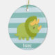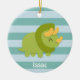 Kawaii cartoon of green and yellow Triceratops Ceramic Tree Decoration