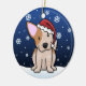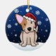 Cute Red Heeler Christmas Ornament, drawn in kawaii cartoon! This adorable dog breed is wearing a red Santa hat, and snowflakes are falling all around him. Absolutely darling, perfect for the dog lover's Xmas tree!
