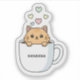 Brighten your day with this ultra-cute kawaii ginger cat peeking out of a cozy coffee cup! Surrounded by soft pastel floating hearts, this adorable orange tabby illustration is perfect for cat lovers, coffee enthusiasts, and fans of Japanese-style aesthetic art. Whether you're looking for a sweet laptop sticker, a charming morning mug, or a unique gift for a 'cat mom,' this design brings a touch of warmth and joy to any item."