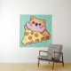 Kawaii Cat Hugging Pepperoni Pizza Cartoon Tapestry