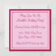 I placed my order for invitations for my 50th birthday party,not knowing what to expect when they came as I didn't know of anyone who had used this company before. When they arrived I was very happy with how they looked and the quality of the card they were printed on. I have sent my invitations out and each of my guests have said how great they look and of course I have given them the website so they too can use the company for invitations in the future. I wouldn't hesitate using Zazzle again. The design and colour was exactly what I saw on the website,quite vibrant and of course I love pink and they look great!