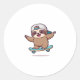 Kawaii Chibi Sloth Skater � Cute Funny Skateboardi Classic Round Sticker