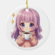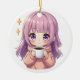 Kawaii Cozy Coffee Girl – Pastel Aesthetic sticker Ceramic Tree Decoration
