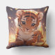 Kawaii style tiger cubs, one on each side of the pillow, aesthetic artwork. Generative content.