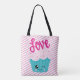 Kawaii Cupcake Love Pink Teal Stripe Cute Girly Tote Bag