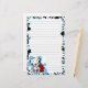 Cute Dalmatian stationery for spotted dog lovers! A kawaii cartoon of the dog breed sits by a red fire hydrant. Perfect to represent this popular firehouse dog! Adorable drawing with a background of blue spots. Lined for easier writing, unruled is also available.