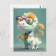 Kawaii Dinosaur Doctor Floral Postcard